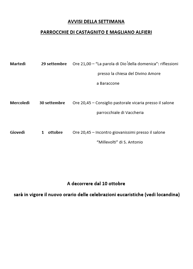 Senza categoriaAvvisi della settimana 25 settembre 20203 ottobre 2020 iltralcio Condividi: Condividi su Facebook (Si apre in una nuova finestra) Facebook Condividi su WhatsApp (Si apre in una nuova finestra) WhatsApp Mi piace Caricamento...