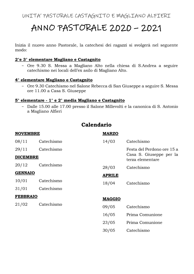 Scarica i moduli da compilare e consegnare ai catechisti.