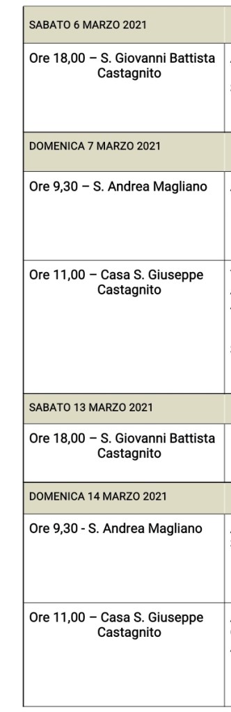 Senza categoriaVariazione orario celebrazioni. 5 marzo 20216 marzo 2021 iltralcio Stessi orari per le celebrazioni, ma luogo diverso per la prefestiva del sabato, nel mese di Marzo e Maggio Condividi: Condividi su Facebook (Si apre in una nuova finestra) Facebook Condividi su WhatsApp (Si apre in una nuova finestra) WhatsApp Mi piace Caricamento...