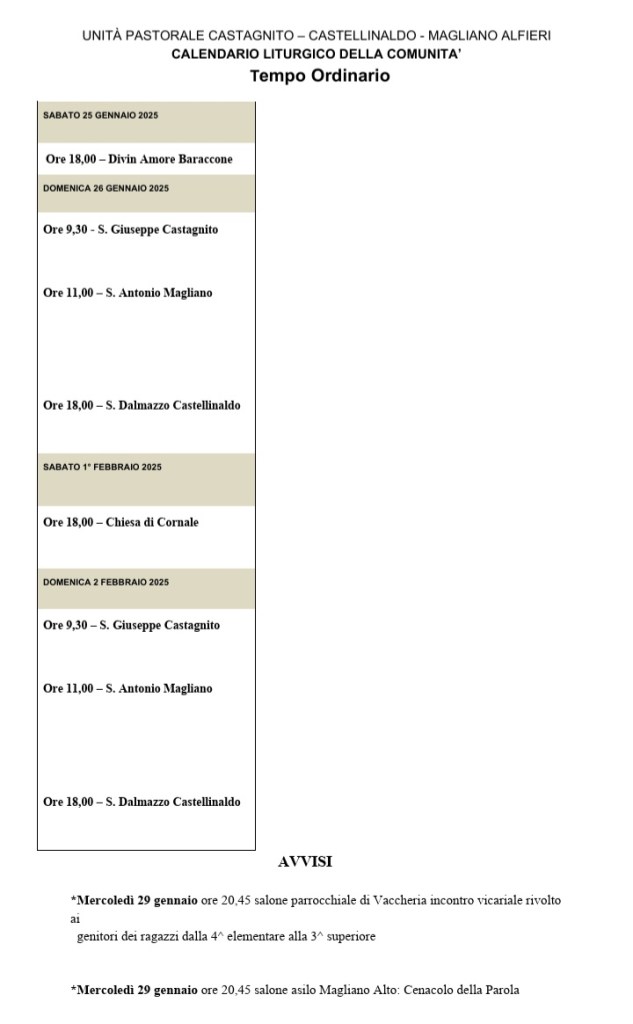 Senza categoriaOrari e Avvisi 24 gennaio 2025 iltralcio Condividi: Fai clic per condividere su Facebook (Si apre in una nuova finestra) Facebook Fai clic per condividere su WhatsApp (Si apre in una nuova finestra) WhatsApp Mi piace Caricamento...