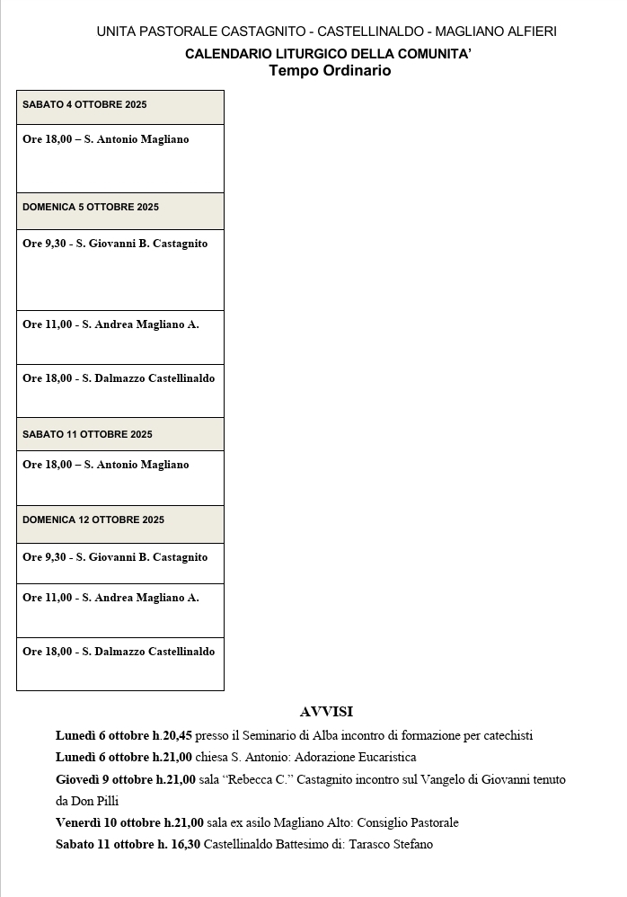 Senza categoriaOrari e Avvisi 3 ottobre 2025 iltralcio Condividi: Condividi su Facebook (Si apre in una nuova finestra) Facebook Condividi su WhatsApp (Si apre in una nuova finestra) WhatsApp Mi piace Caricamento...