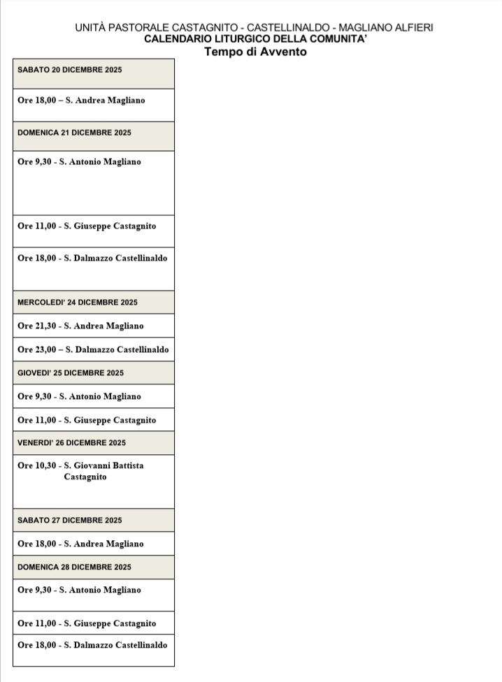 Senza categoriaSanto Natale 2025 Orari e Avvisi 19 dicembre 2025 iltralcio File pdf Download Condividi: Fai clic per condividere su Facebook (Si apre in una nuova finestra) Facebook Fai clic per condividere su WhatsApp (Si apre in una nuova finestra) WhatsApp Mi piace Caricamento...