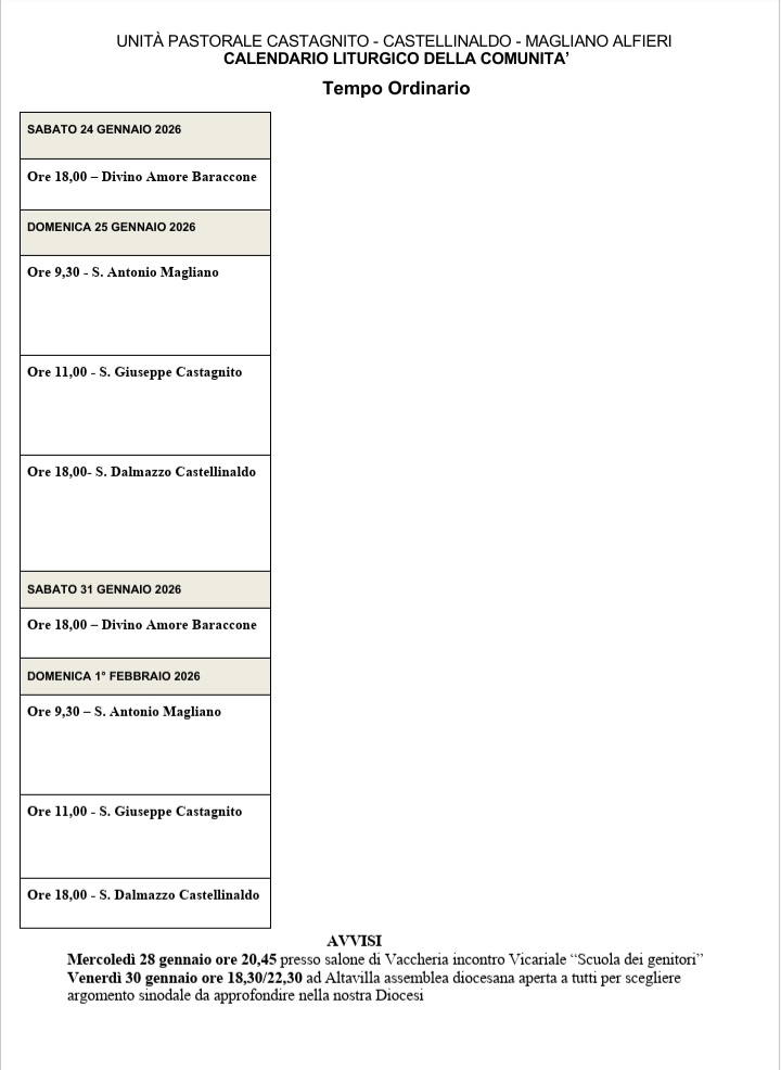 Senza categoriaOrari e Avvisi 23 gennaio 2026 iltralcio Condividi: Condividi su Facebook (Si apre in una nuova finestra) Facebook Condividi su WhatsApp (Si apre in una nuova finestra) WhatsApp Mi piace Caricamento...